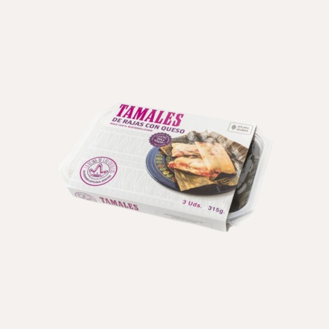 Tamales de Rajas con queso de la Reina de las Tortillas, 3 unidades.