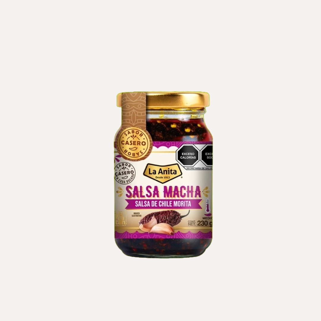 Salsa macha casera preparada con aceite de canola, chiles secos, ajo y sal de forma tradicional.